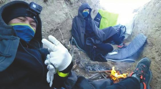 Lati Mulati y Ayados Shakhdarati, dos estudiantes de pregrado de la Universidad Minzu del Sureste en la provincia de Sichuan, en el suroeste de China, descansan en un lugar perdido en la provincia de Gansu, noroeste de China. [Foto proporcionada a chinadaily.com.cn]