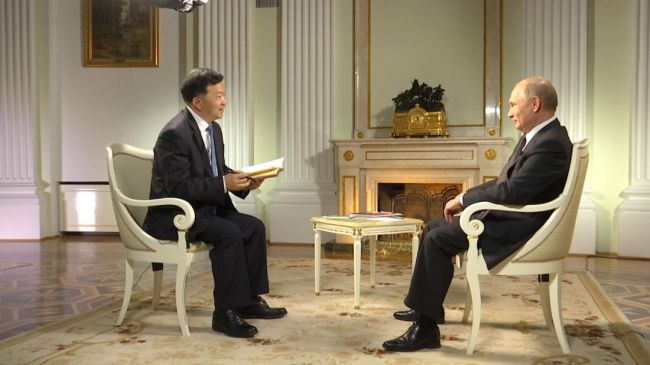 El presidente ruso Vladimir Putin durante la entrevista con Shen Haixiong, presidente de China Media Group. [Foto: cri.cn]