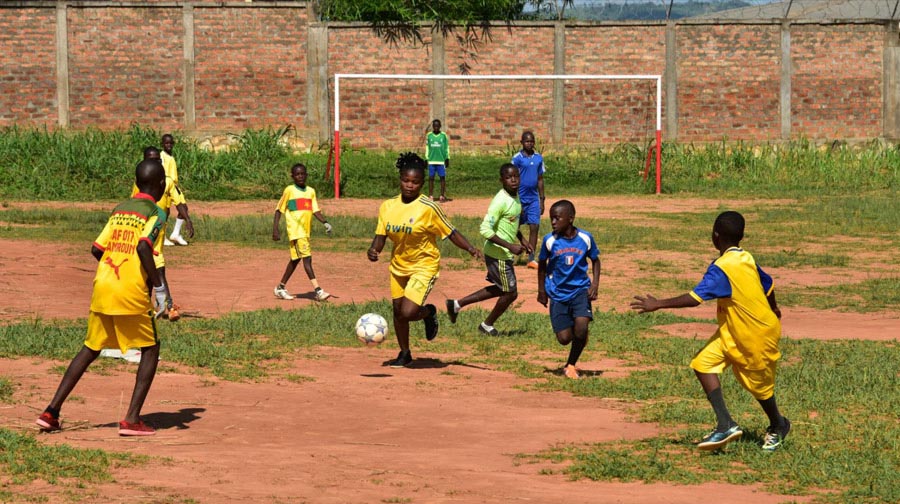Los ni?os juegan al fútbol en la Aldea Infantil Internacional SOS en la República Centroafricana a principios de junio.