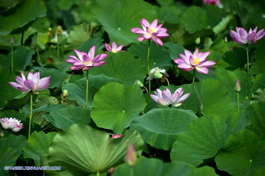 ANHUI, junio 14, 2018 (Xinhua) -- Flores de loto son captadas en la villa de Xihu en la ciudad de Tongling, provincia de Anhui, en el este de China, el 14 de junio de 2018. (Xinhua/Zhang Duan)