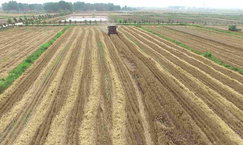 Agricultores empacan paja de trigo como materiales para plantas de energía