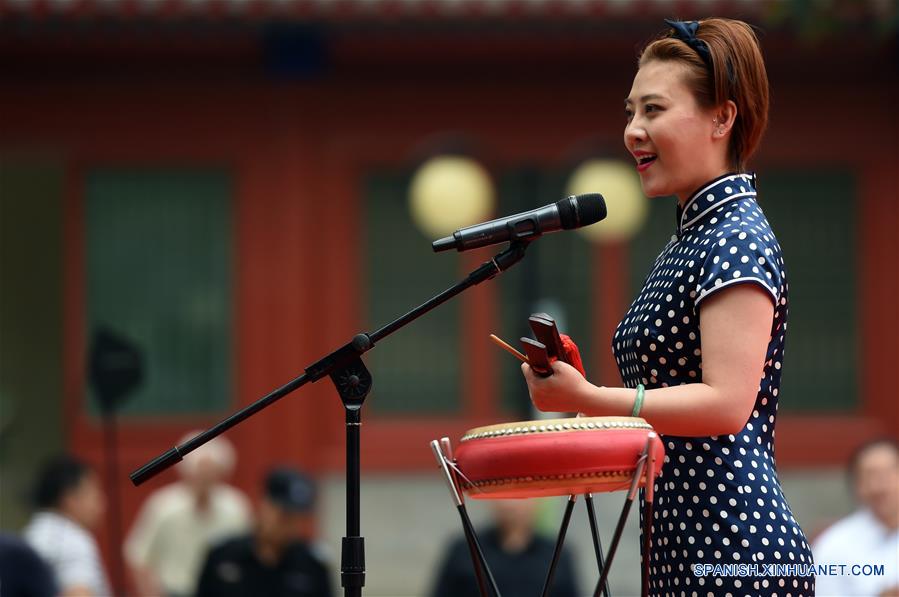 BEIJING, junio 16, 2018 (Xinhua) -- La artista Li Xiang interpreta un tipo de ópera china durante una actividad llevada a cabo para celebrar el próximo Festival de Botes de Dragón, en el Museo de Arte de Talla de Piedra de Beijing, en Beijing, capital de China, el 16 de junio de 2018. (Xinhua/Luo Xiaoguang)
