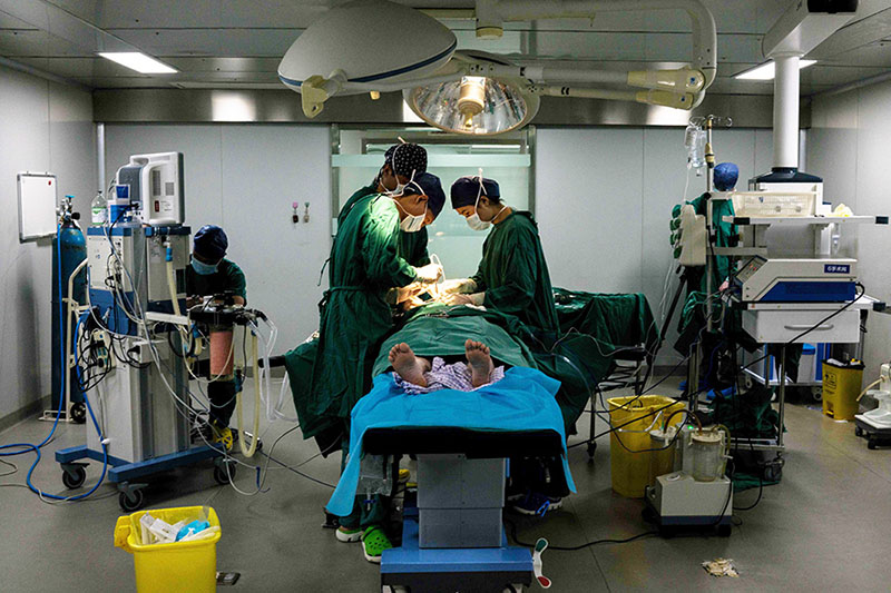 Varios doctores realizan una cirugía plástica en el Hospital de Cirugía Plástica Huamei en Shanghai.
