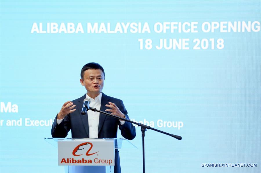 El fundador y presidente ejecutivo de Alibaba, Jack Ma, pronuncia un discurso durante la ceremonia de inauguración de una oficina de Alibaba en Malasia, en Kuala Lumpur, Malasia, el 18 de junio de 2018. De acuerdo con información de la prensa local, la nueva oficina en Malasia del Grupo Alibaba comenzó a operar el lunes, mientras el gigante chino de la tecnología continúa su expansión en el extranjero en la región del sureste asiático. (Xinhua/Zhu Wei)