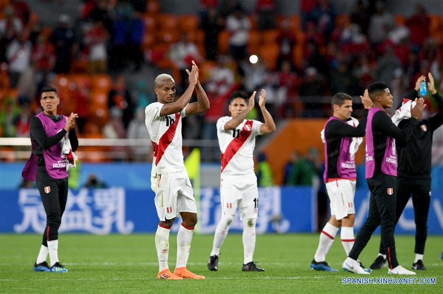Los jugadores de Perú agradecen al público al término del partido del Grupo C de la Copa Mundial de la FIFA Rusia 2018, ante Francia, en Ekaterimburgo, Rusia, el 21 de junio de 2018. Francia ganó 1-0 el encuentro. (Xinhua/Du Yu)