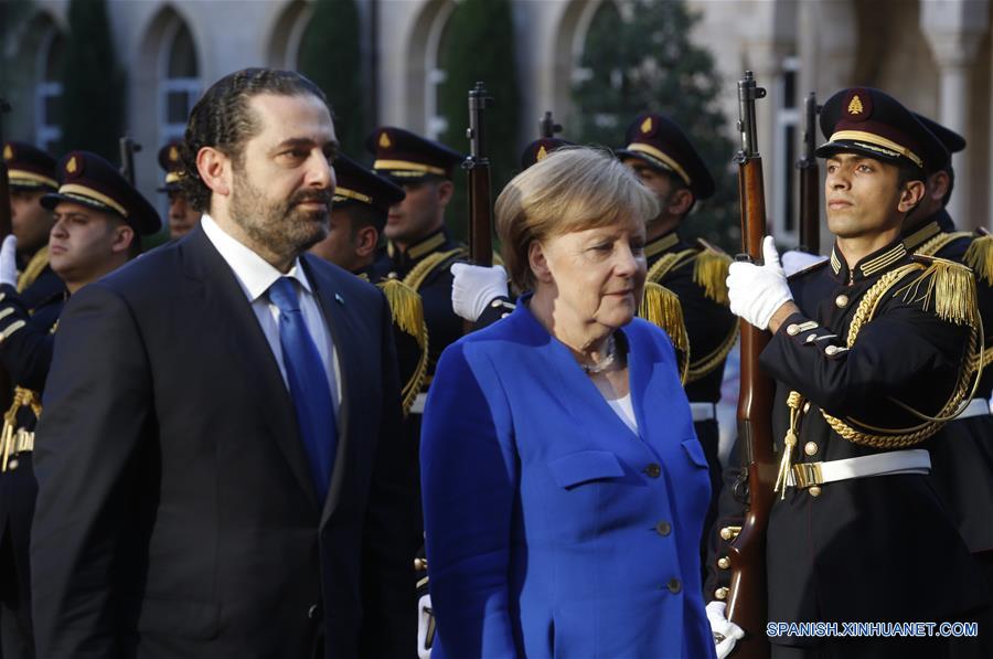 Acompa?ada de una delegación empresarial de alto nivel, Merkel fue recibida por el primer ministro designado Saad Hariri, quien le ofrecerá una cena oficial en el Gran Serial de Beirut.