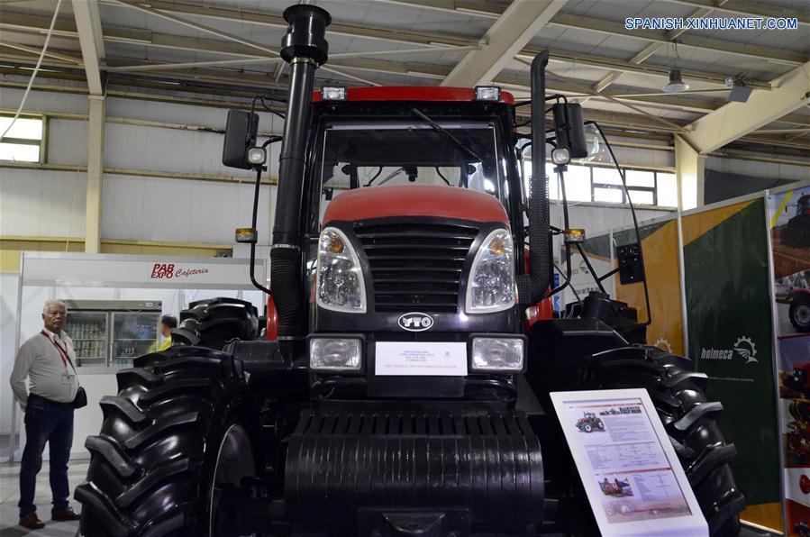 LA HABANA, junio 22, 2018 (Xinhua) -- Imagen del 21 de junio de 2018, de un tractor agrícola siendo exhibido en el estand de una empresa china durante la III Exposición Internacional de la Industria Cubana (Cubaindustrias 2018), llevada a cabo en el ferial Pabexpo, en La Habana, Cuba. Casi todos los cubanos tienen contacto directo con algún medio de transporte proveniente de China, y para el pueblo cubano la llegada de los autobuses Yutong en 2005 y más recientemente la de bicicletas y triciclos eléctricos Minerva, producidos en Cuba a partir de una asociación con una empresa china, ha representado un gran avance. La circulación en las vías de estos productos solventan en gran medida uno de los principales problemas en Cuba, donde el transporte público casi en su totalidad es terrestre y millones de personas dependen de los autobuses Yutong para trasladarse. (Xinhua/Joaquín Hernández)