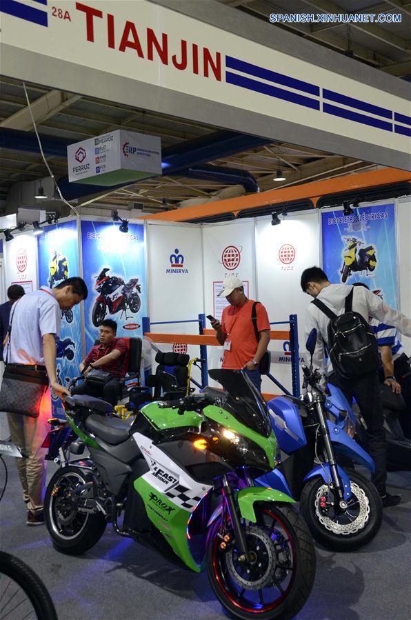 LA HABANA, junio 22, 2018 (Xinhua) -- Imagen del 21 de junio de 2018, de motocicletas eléctricas siendo exhibidas en el estand de una empresa china durante la III Exposición Internacional de la Industria Cubana (Cubaindustrias 2018), llevada a cabo en el ferial Pabexpo, en La Habana, Cuba. Casi todos los cubanos tienen contacto directo con algún medio de transporte proveniente de China, y para el pueblo cubano la llegada de los autobuses Yutong en 2005 y más recientemente la de bicicletas y triciclos eléctricos Minerva, producidos en Cuba a partir de una asociación con una empresa china, ha representado un gran avance. La circulación en las vías de estos productos solventan en gran medida uno de los principales problemas en Cuba, donde el transporte público casi en su totalidad es terrestre y millones de personas dependen de los autobuses Yutong para trasladarse. (Xinhua/Joaquín Hernández)
