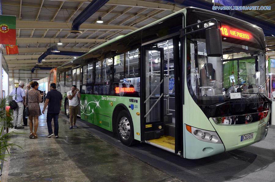 LA HABANA, junio 22, 2018 (Xinhua) -- Imagen del 21 de junio de 2018, de un autobús marca Yutong siendo exhibido en el estand de una empresa china durante la III Exposición Internacional de la Industria Cubana (Cubaindustrias 2018), llevada a cabo en el ferial Pabexpo, en La Habana, Cuba. Casi todos los cubanos tienen contacto directo con algún medio de transporte proveniente de China, y para el pueblo cubano la llegada de los autobuses Yutong en 2005 y más recientemente la de bicicletas y triciclos eléctricos Minerva, producidos en Cuba a partir de una asociación con una empresa china, ha representado un gran avance. La circulación en las vías de estos productos solventan en gran medida uno de los principales problemas en Cuba, donde el transporte público casi en su totalidad es terrestre y millones de personas dependen de los autobuses Yutong para trasladarse. (Xinhua/Joaquín Hernández)