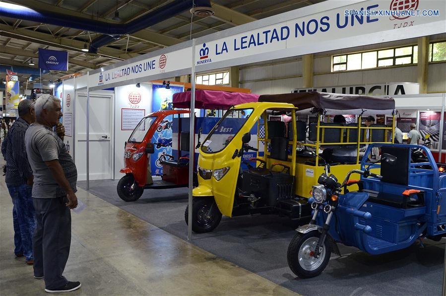 LA HABANA, junio 22, 2018 (Xinhua) -- Imagen del 21 de junio de 2018, de productos cubanos siendo exhibidos en el estand de una empresa cubana durante la III Exposición Internacional de la Industria Cubana (Cubaindustrias 2018), llevada a cabo en el ferial Pabexpo, en La Habana, Cuba. Casi todos los cubanos tienen contacto directo con algún medio de transporte proveniente de China, y para el pueblo cubano la llegada de los autobuses Yutong en 2005 y más recientemente la de bicicletas y triciclos eléctricos Minerva, producidos en Cuba a partir de una asociación con una empresa china, ha representado un gran avance. La circulación en las vías de estos productos solventan en gran medida uno de los principales problemas en Cuba, donde el transporte público casi en su totalidad es terrestre y millones de personas dependen de los autobuses Yutong para trasladarse. (Xinhua/Joaquín Hernández)