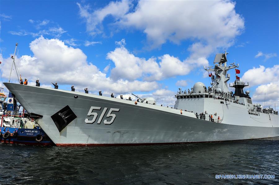 Imagen del 22 de junio de 2018 de la fragata naval china "Binzhou" navegando en el Puerto de Gdynia, en el norte de Polonia. La fragata naval china "Binzhou" comenzó el viernes su visita de cinco días a Polonia. (Xinhua/Chen Xu)