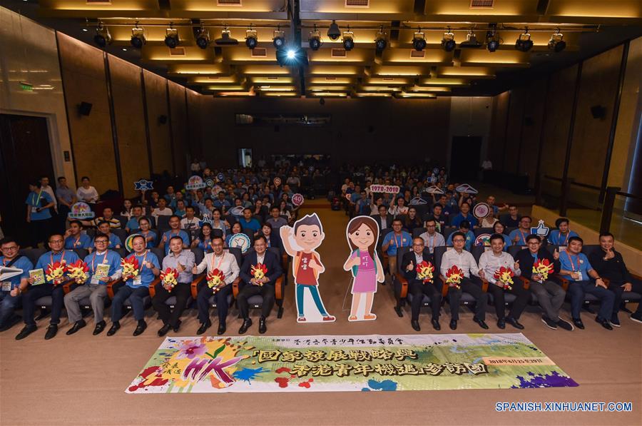 GUANGDONG, junio 25, 2018 (Xinhua) -- Representantes juveniles de Hong Kong asisten a la ceremonia de inauguración de una delegación en el territorio chino, en Shenzhen, provincia de Guangdong, en el sur de China, el 25 de junio de 2018. Organizada por el Comité de Actividades Juveniles de Hong Kong, una delegación de aproximadamente 150 jóvenes de Hong Kong iniciaron el lunes un viaje de cinco días a Shenzhen, Wuhan y Beijing para aprender sobre la reforma y la apertura en China. (Xinhua/Mao Siqian)
