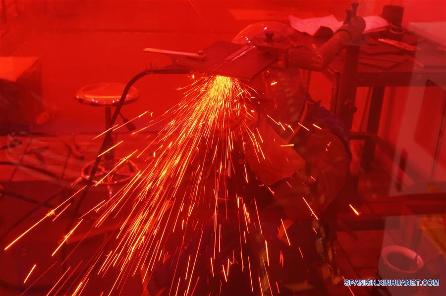 Un participante solda durante una prueba de la Competencia ChinaSkills 2018, en Guangzhou, capital de la provincia de Guangdong, en el sur de China, el 25 de junio de 2018. Una serie de pruebas de la Competencia ChinaSkills 2018 iniciaron el lunes en Guangzhou. Al llevar a cabo estas pruebas en Guangzhou y en Shanghai respectivamente, la Competencia ChinaSkills 2018 seleccionará a candidatos calificados para conformar el equipo de China, que participará en el evento WorldSkills de Kazán 2019. (Xinhua/Shen Bohan)