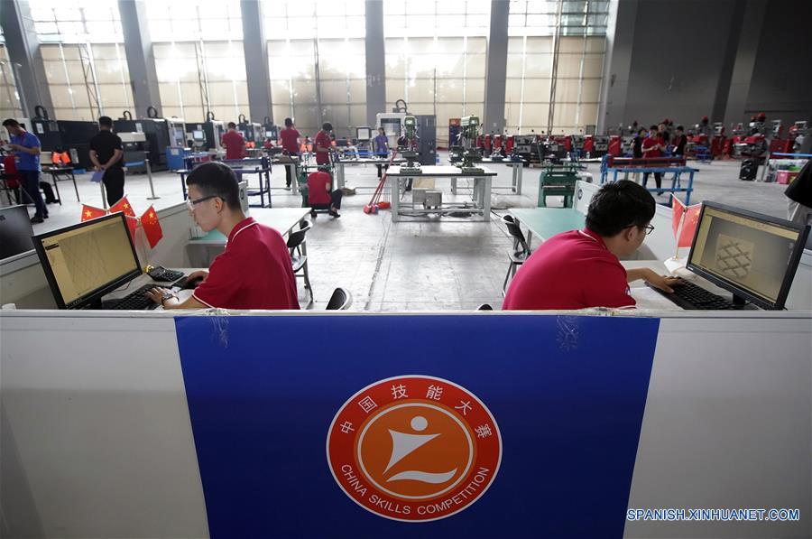Participantes compiten durante una prueba de la Competencia ChinaSkills 2018, en Guangzhou, capital de la provincia de Guangdong, en el sur de China, el 25 de junio de 2018. Una serie de pruebas de la Competencia ChinaSkills 2018 iniciaron el lunes en Guangzhou. Al llevar a cabo estas pruebas en Guangzhou y en Shanghai respectivamente, la Competencia ChinaSkills 2018 seleccionará a candidatos calificados para conformar el equipo de China, que participará en el evento WorldSkills de Kazán 2019. (Xinhua/Shen Bohan)