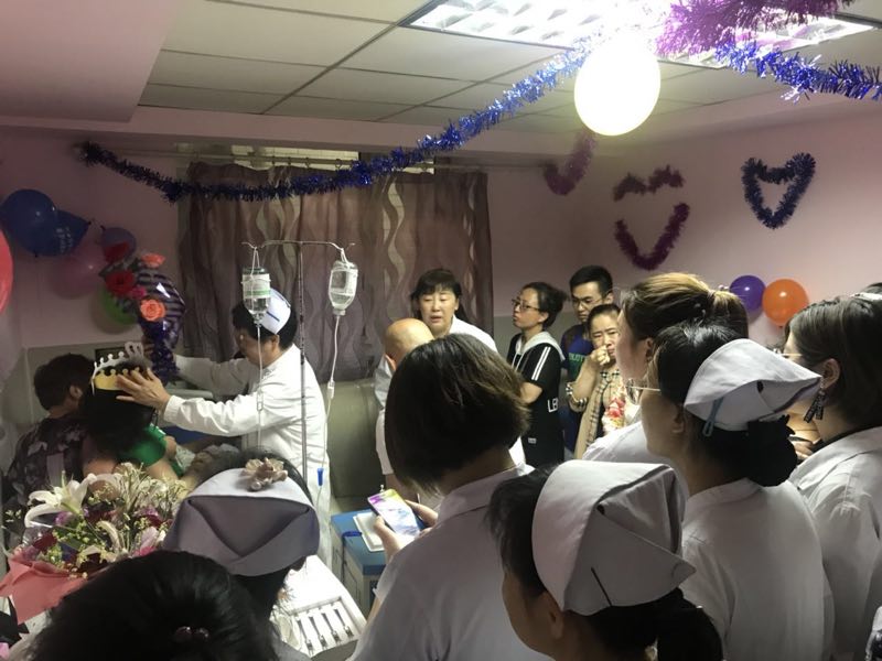 Harbin, Heilongjiang, 26/06/2018 (El Pueblo en Línea) - Este viernes, doctores, enfermeras, amigos y parientes de Xue le celebraron por adelantado su cumplea?os. [Foto: proporcionada]
