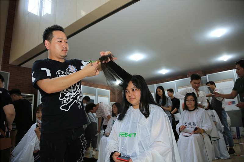 Una voluntaria dona su cabello a los ni?os con leucemia, Shanghai, 27 de junio del 2018. [Foto: proporcionada]