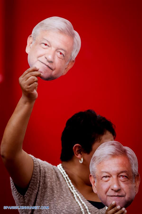 Una persona participa durante el cierre de campa?a del candidato presidencial Andrés Manuel López Obrador, de la coalición "Juntos Haremos Historia", en el Estadio Azteca de la Ciudad de México, capital de México, el 27 de junio de 2018. México inició la cuenta regresiva para vivir el 1 de julio una jornada electoral "histórica", donde más de 89 millones de mexicanos están llamados a las urnas para elegir al nuevo presidente que gobernará al país durante seis a?os a partir del 1 de diciembre. (Xinhua/Francisco Ca?edo)