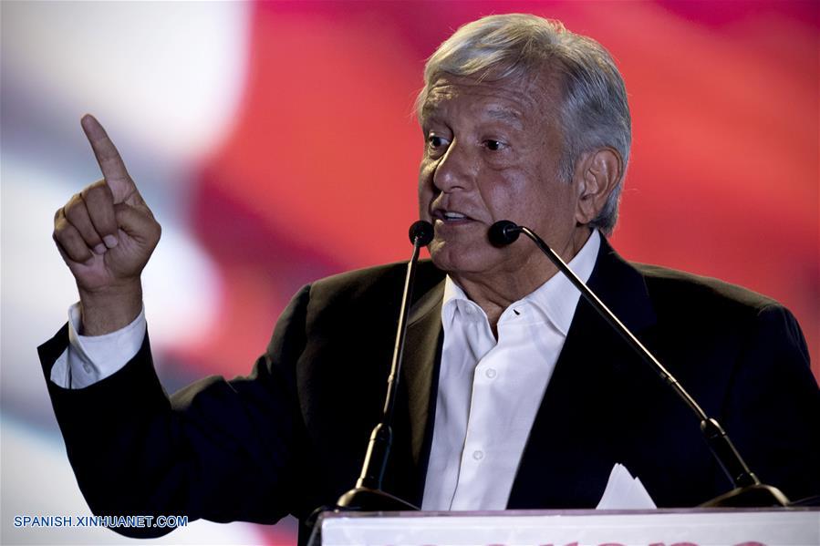 El candidato presidencial Andrés Manuel López Obrador, de la coalición "Juntos Haremos Historia", pronuncia un discurso durante su cierre de campa?a, en el Estadio Azteca de la Ciudad de México, capital de México, el 27 de junio de 2018. (Xinhua/Alejandro Ayala)