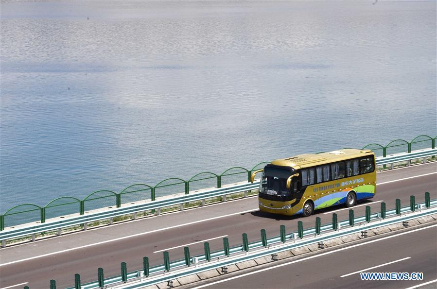 Un vehículo avanza por la ribera del lago Sayram de Xinjiang, Región Autónoma Uygur, 29 de junio del 2018. (Foto: Xinhua/ Zhao Ge)
