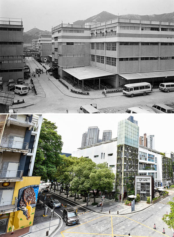 La parte superior (archivo) es una foto tomada por Li Changyong muestra una planta de la marca Sanyo en Shenzhen, provincia de Guangdong. La foto inferior tomada por Mao Siqian el 20 de junio del 2018 muestra un nuevo aspecto de la planta Sanyo, transformada en una zona industrial creativa. Este a?o se conmemora el 40 aniversario de la política de reforma y apertura de China. En las últimas cuatro décadas, Shenzhen se ha desarrollado desde su condición de peque?o puerto pesquero hasta convertirse en una metrópolis global. (Foto: Xinhua)