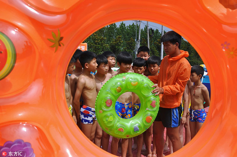 A los estudiantes de primaria se les ense?a sobre salvamento y primeros auxilios en Donghai, provincia de Jiangsu, 1 de julio del 2018. [Foto: IC]