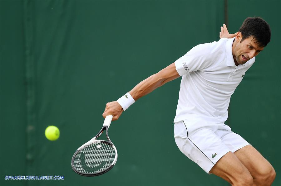 LONDRES, julio 5, 2018 (Xinhua) -- Novak Dokovic, de Serbia, devuelve la pelota a Horacio Zeballos, de Argentina, durante el partido individual varonil de segunda ronda del Campeonato de Wimbledon 2018, en Londres, Reino Unido, el 5 de julio de 2018. Novak Dokovic ganó el encuentro. (Xinhua/Guo Qiuda)