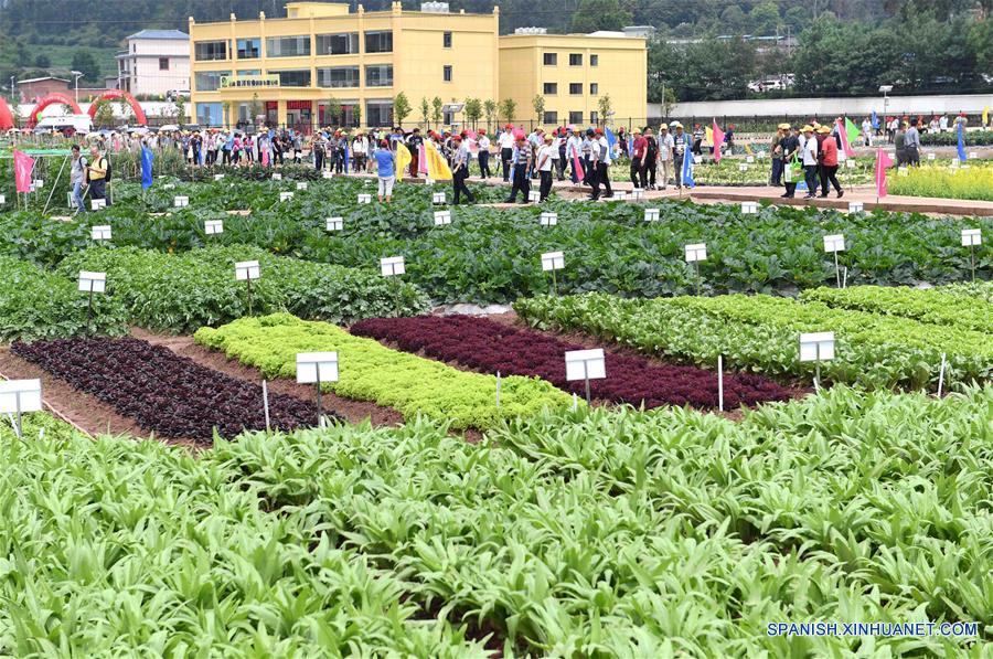 Personas visitan la Exposición de Semillas y Vegetales de Yunnan 2018, en el condado de Wuding, en la Prefectura Autónoma Chuxiong Yi, provincia de Yunnan, en el suroeste de China, el 9 de julio de 2018. (Xinhua/Yang Zongyou)