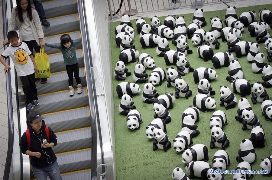 Imagen del 10 de julio de 2018 de pandas de papel maché siendo exhibidos durante la exposición de obras de papel maché "1,600 Pandas" implementada en el centro comercial Metrotown, en Vancouver, Canadá. "1,600 Pandas", una obra de papel maché creada en 2008 por el artista francés, Paulo Grangeon, para el Fondo Mundial para la Naturaleza (WWF, por sus siglas en inglés), comenzó el martes su gira de exposición en Canadá. (Xinhua/Liang sen)