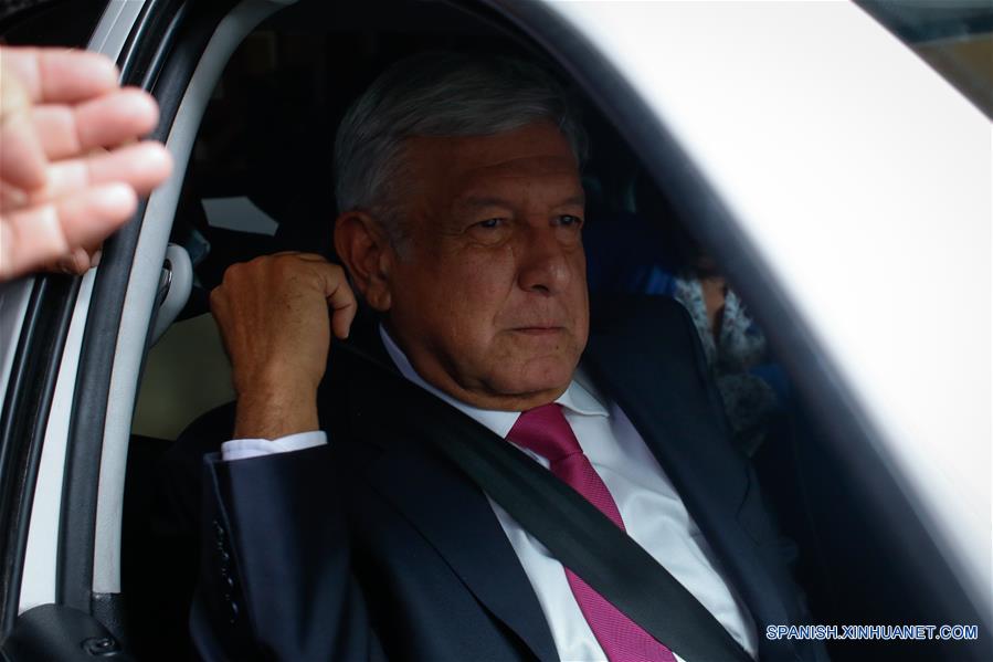 El virtual ganador de la elección presidencial en México, Andrés Manuel López Obrador, reacciona en su coche después de reunirse con los próximos diputados federales y senadores de la Coalición Juntos Haremos Historia, en la Ciudad de México, capital de México, el 11 de julio de 2018. De acuerdo con información de la prensa local, Andrés Manuel López Obrador anunció en una conferencia de prensa, las primeras iniciativas que mandará al Congreso, incluyendo la eliminación de la inmunidad presidencial y la revocación de las leyes de la reforma educativa. (Xinhua/Francisco Ca?edo)