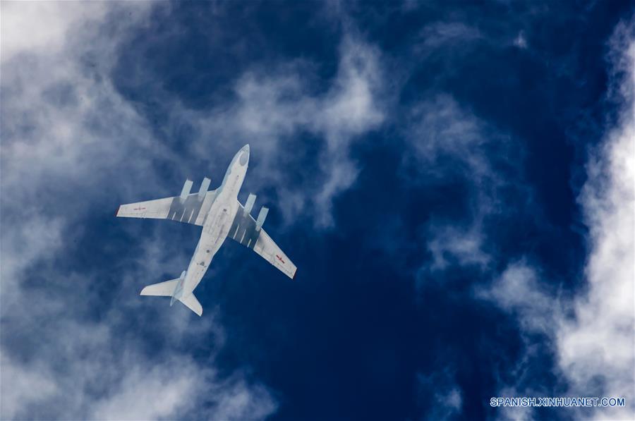 JINAN, julio 12, 2018 (Xinhua) -- Un avión de transporte IL-76 de la fuerza aérea del Ejército Popular de Liberación (EPL) de China vuela durante un módulo de entrenamiento en preparación para los Juegos Militares Internacionales, el 12 de julio de 2018. La fuerza aérea del Ejército Popular de Liberación (EPL) de China enviará bombarderos H-6K, cazas J-10A, cazabombarderos JH-7A, aviones de transporte IL-76 y Y-9 y un equipo de tropas aerotransportadas a Rusia para participar en los Juegos Militares Internacionales. Esta será la primera vez que bombarderos H-6K y aviones de transporte Y-9 viajan al extranjero para participar en competencias militares, se?aló durante una conferencia de prensa un vocero de la fuerza aérea del EPL. (Xinhua/Yang Pan)
