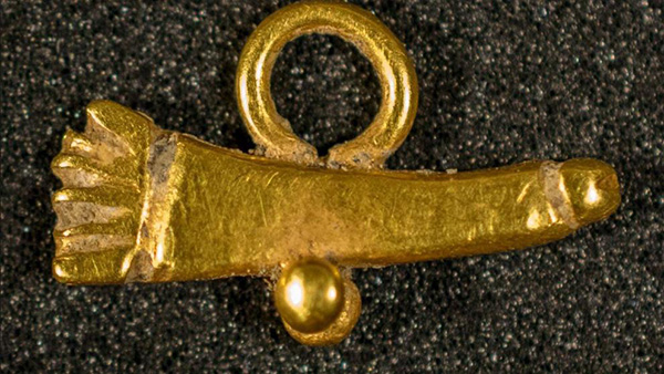 Uncastillo, Zaragoza, 17/07/2018 (El Pueblo en Línea) - La campa?a de excavación en el yacimiento de Los Ba?ales, en la localidad zaragozana de Uncastillo, ha sacado a la luz un amuleto fálico de oro de época tardo Imperial (siglos I o II d.C). Se trata de una pieza de 1,5 centímetros, singular por su temática y por el material con el que está hecha, y según ha informado la comarca de las Cinco Villas ha sido localizada en una habitación de una casa domestica que se está excavando en la zona norte del yacimiento, según La Vanguardia.