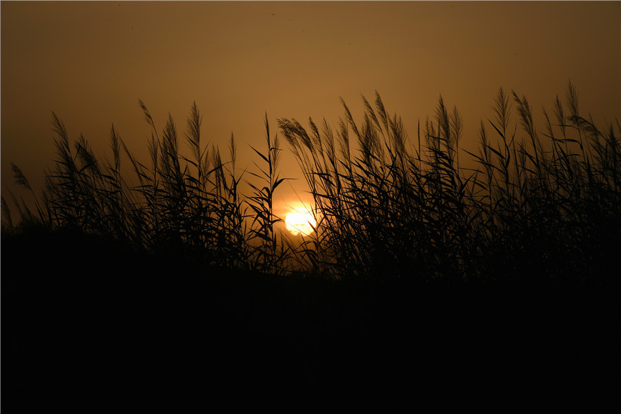 La puesta de sol en Tazhong. [Xinhua / Hu Huhu]