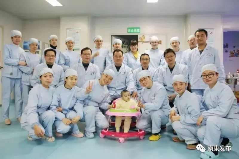 Duoduo y los médicos del hospital de Ganzhou, provincia de Jiangxi. [Foto: cuenta de WeChat]