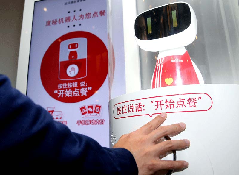 Un cliente solicita un pedido a un robot virtual de KFC en Shanghai, 25 de abril del 2016. [Foto: Xinhua]
