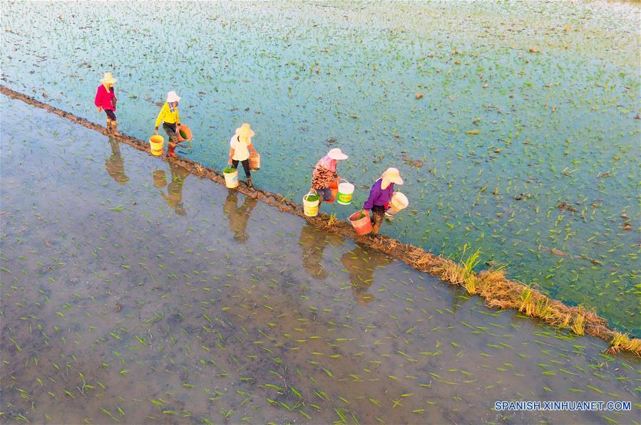 JIANGXI, julio 23, 2018 (Xinhua) -- Agricultores trabajan en un campo, en la aldea Huangjia, en el condado de Yongfeng de la ciudad de Ji'an, provincia de Jiangxi, en el este de China, el 23 de julio de 2018. El Gran Calor, o Dashu en el calendario lunar chino, que significa el día más caluroso del verano, cae el 23 de julio este a?o. (Xinhua/Liu Haojun)