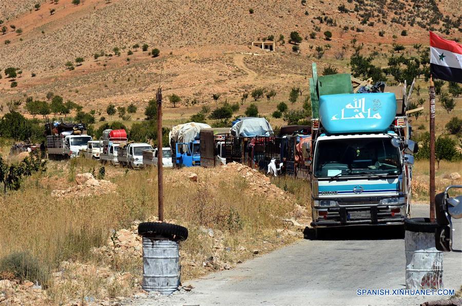 BEIRUT, 23 jul (Xinhua) -- Cerca de 850 refugiados sirios de Arsal en Líbano regresaron hoy a su país a través del cruce fronterizo de Zemrani.