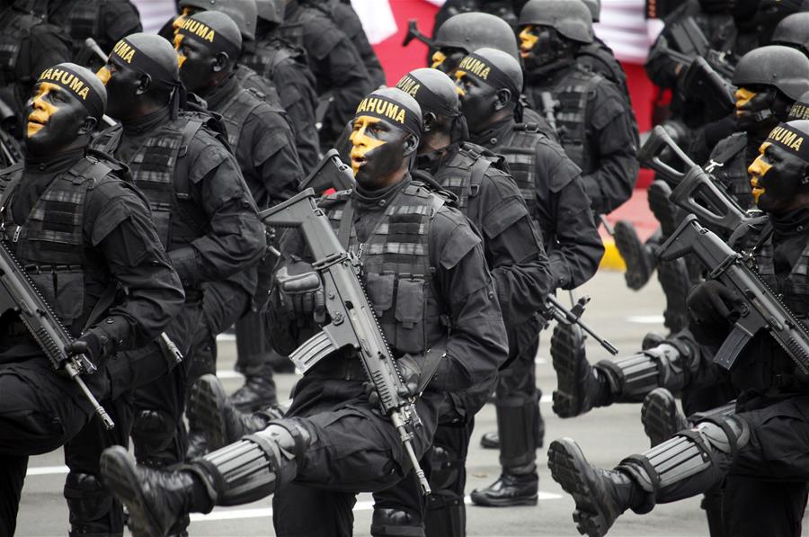 LIMA, julio 29, 2018 (Xinhua) -- Miembros de las Fuerzas Armadas peruanas participan durante la Gran Parada y Desfile Cívico-Militar, en el marco de las celebraciones del 197 Aniversario de la Independencia de Perú, en la ciudad de Lima, Perú, el 29 de julio de 2018. De acuerdo con información de la prensa local, residentes de Lima y del interior del país asistieron el domingo a la avenida Brasil para presenciar la Gran Parada y Desfile Cívico-Militar y celebrar el 197 Aniversario de la Independencia de Perú. (Xinhua/Luis Camacho)