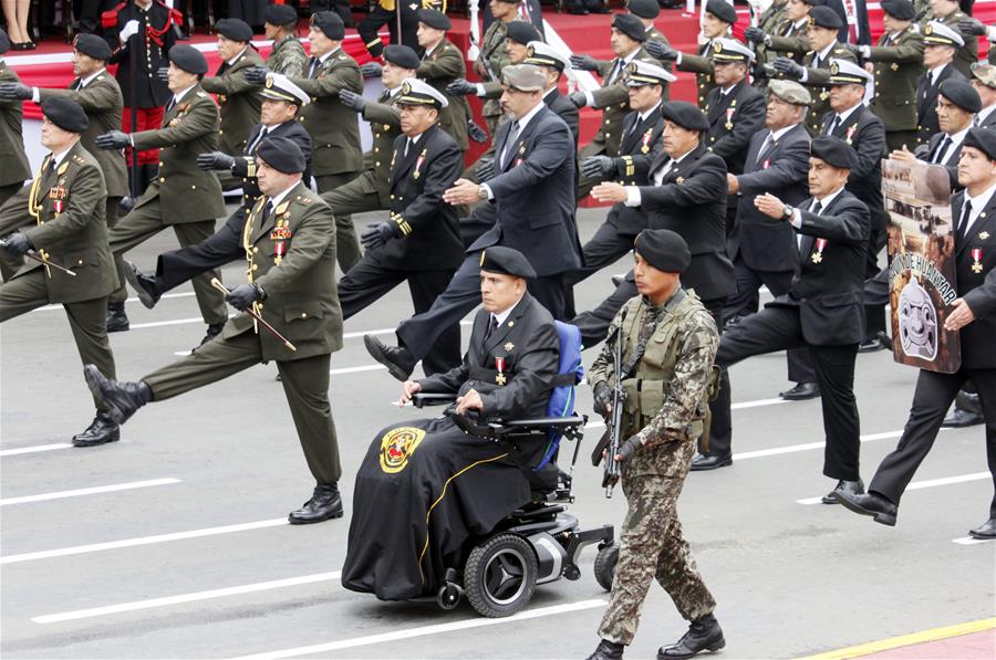LIMA, julio 29, 2018 (Xinhua) -- Miembros de delegación de los Comandos Chavín de Huántar participan durante la Gran Parada y Desfile Cívico-Militar, en el marco de las celebraciones del 197 Aniversario de la Independencia de Perú, en la ciudad de Lima, Perú, el 29 de julio de 2018. De acuerdo con información de la prensa local, residentes de Lima y del interior del país asistieron el domingo a la avenida Brasil para presenciar la Gran Parada y Desfile Cívico-Militar y celebrar el 197 Aniversario de la Independencia de Perú. (Xinhua/Luis Camacho)