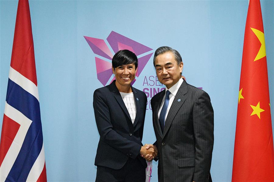 Durante una reunión en Singapur con la ministra de Relaciones Exteriores de Noruega Ine Eriksen Soreide en Singpaur, el consejero de Estado chino, Wang Yi, dijo que China y Noruega defienden el libre comercio y que las dos partes deben acelerar las negociaciones de un acuerdo de libre comercio para salvaguardar el sistema de libre comercio global basado en reglas.
