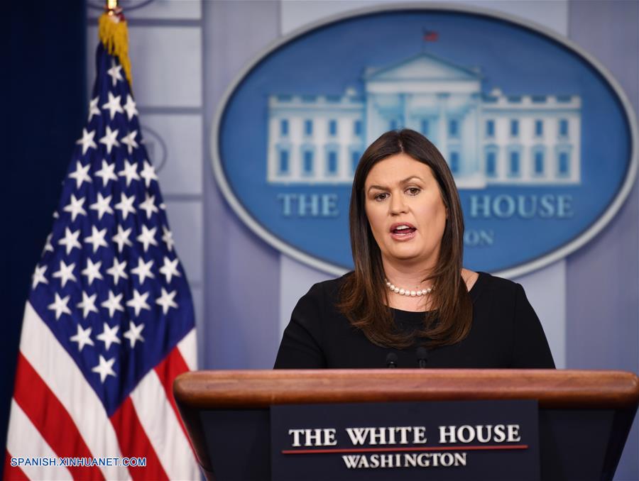 La vocera de la Casa Blanca, Sarah Sanders, participa en una conferencia de prensa en la Casa Blanca, en Washington D.C., Estados Unidos, el 2 de agosto de 2018. La Casa Blanca indicó el jueves que el presidente de Estados Unidos, Donald Trump, respondió a una nueva carta de Kim Jong Un, máximo líder de República Popular Democrática de Corea (RPDC), y que la carta de Trump será entregada "pronto". (Xinhua/Liu Jie)