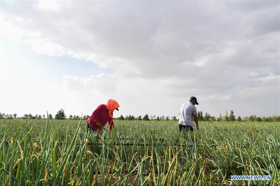 Los trabajadores limpian una huerta en el desierto Kubuqi en Hangjin Banner, región autónoma de Mongolia Interior, al norte de China. Kubuqi, el séptimo desierto más grande de China, es un buen ejemplo del éxito de China en la lucha contra la desertificación. Alrededor de 6.460 kilómetros cuadrados del desierto de Kubuqi han sido recuperados en los últimos 30 a?os. (Xinhua / Peng Yuan)