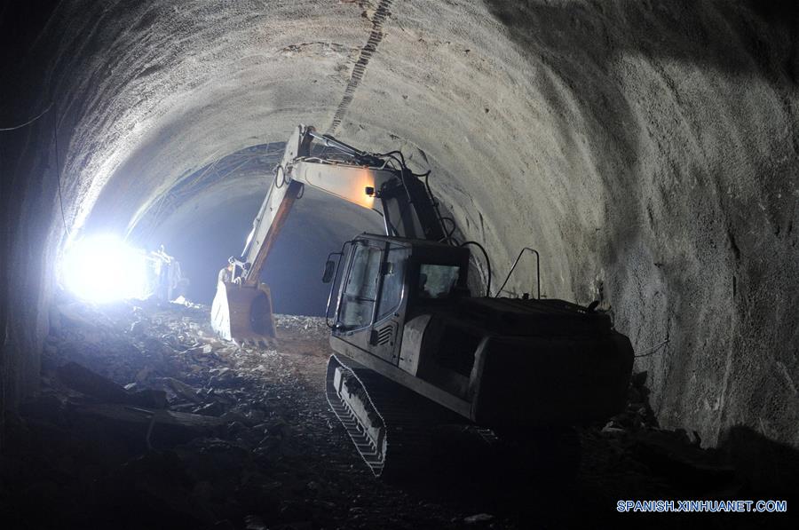 Imagen del 10 de agosto de 2018 de una vista del sitio de construcción del Túnel Yangshan, parte del Ferrocarril Menghua, en Yan'an, provincia de Shaanxi, en el noroeste de China. La construcción del túnel de 11.668 kilómetros de longitud fue completada el viernes. (Xinhua/Zhang Bowen)