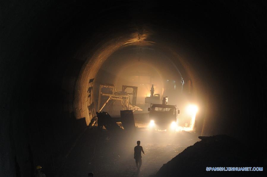 SHAANXI, agosto 11, 2018 (Xinhua) -- Imagen del 10 de agosto de 2018 de una vista del sitio de construcción del Túnel Yangshan, parte del Ferrocarril Menghua, en Yan'an, provincia de Shaanxi, en el noroeste de China. La construcción del túnel de 11.668 kilómetros de longitud fue completada el viernes. (Xinhua/Zhang Bowen)