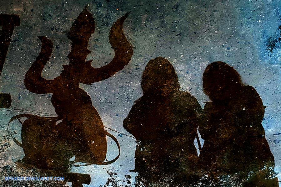 KATMANDU, agosto 13, 2018 (Xinhua) -- Vista de mujeres hindúes reflejadas en un charco de agua mientras ofrecen oraciones durante el Shrawan Somvar, en el templo de Shiva, en Katmandú, Nepal, el 13 de agosto de 2018. De acuerdo con información de la prensa local, los lunes, o Somvar, en el mes del Shrawan, son considerados benéficos para las mujeres hindúes, mientras ayunan y ofrecen oraciones a Lord Shiva. (Xinhua/Sunil Sharma)