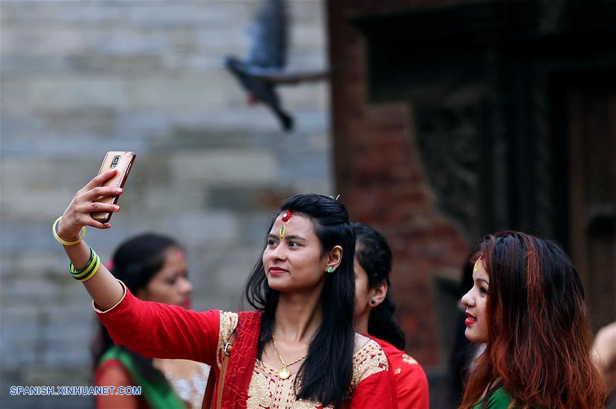KATMANDU, agosto 13, 2018 (Xinhua) -- Una mujer hindú se toma una selfie después de ofrecer oraciones durante el Shrawan Somvar, en el templo de Shiva, en Katmandú, Nepal, el 13 de agosto de 2018. De acuerdo con información de la prensa local, los lunes, o Somvar, en el mes del Shrawan, son considerados benéficos para las mujeres hindúes, mientras ayunan y ofrecen oraciones a Lord Shiva. (Xinhua/Sunil Sharma)