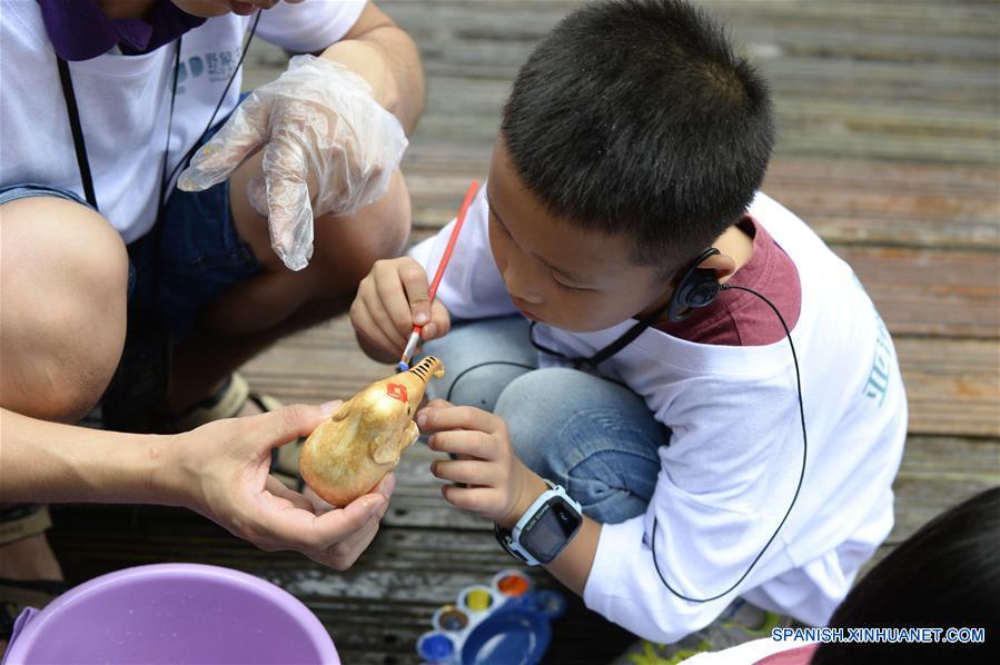 YUNNAN, agosto 12, 2018 (Xinhua) -- Un ni?o voluntario pinta una estatuilla con forma de elefante en el marco del Día Mundial del Elefante, en el punto escénico del Valle del Elefante Salvaje, en Xishuangbanna, provincia de Yunnan, en el suroeste de China, el 12 de agosto de 2018. Un desfile y un festín de frutas especiales fueron llevados a cabo para celebrar el Día Mundial del Elefante. (Xinhua/Xie Ziyi)