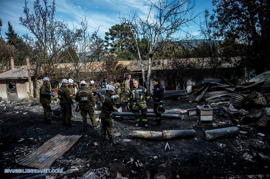 CHIGUAYANTE, agosto 14, 2018 (Xinhua) -- Imagen cedida por la Presidencia de Chile, de miembros del Laboratorio de Criminalística de Carabineros (LABOCAR) inspeccionando el lugar donde se registró un incendio en el hogar de adultos mayores Hogar Santa Marta, en la localidad de Chiguayante, en el sur de Chile, el 14 de agosto de 2018. El presidente chileno, Sebastián Pi?era, lamentó la muerte de 10 ancianas por el incendio ocurrido el martes en un hogar de adultos mayores en la ciudad de Chiguayante, en la región de Biobío (sur), tras visitar la zona siniestrada. (Xinhua/Marcelo Segura/Presidencia de Chile)