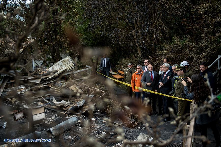 CHIGUAYANTE, agosto 14, 2018 (Xinhua) -- Imagen cedida por la Presidencia de Chile, del presidente chileno, Sebastián Pi?era (6-d), visitando el lugar donde se registró un incendio en el hogar de adultos mayores Hogar Santa Marta, en la localidad de Chiguayante, en el sur de Chile, el 14 de agosto de 2018. El presidente chileno, Sebastián Pi?era, lamentó la muerte de 10 ancianas por el incendio ocurrido el martes en un hogar de adultos mayores en la ciudad de Chiguayante, en la región de Biobío (sur), tras visitar la zona siniestrada. (Xinhua/Marcelo Segura/Presidencia de Chile)
