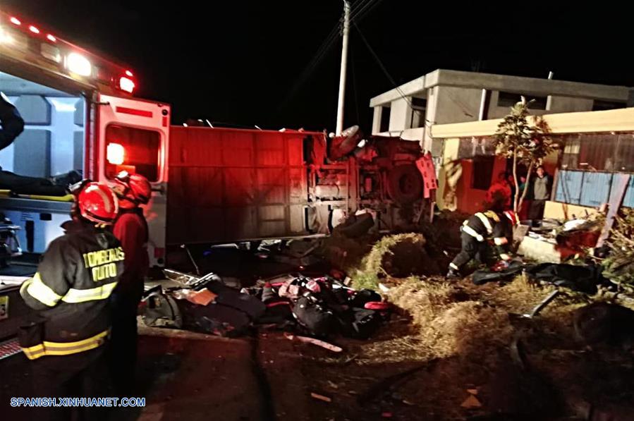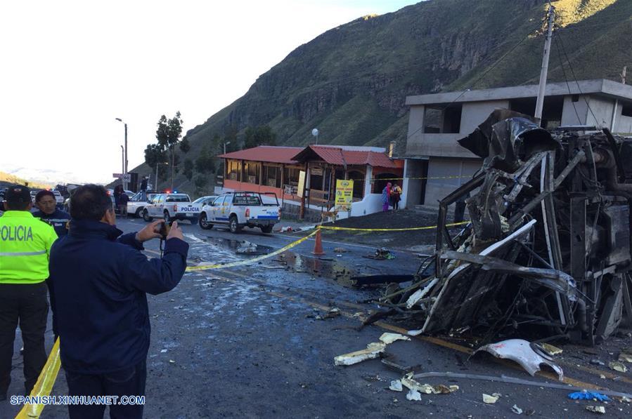 QUITO, 14 ago (Xinhua) -- Ascendió a 24 la cifra de muertos y a 19 la de heridos por el accidente de tránsito ocurrido hoy martes en la vía Pifo-Papallacta, al oriente de la provincia ecuatoriana de Pichincha, cuya capital es Quito, informó el Cuerpo de Bomberos de Quito (CBQ).