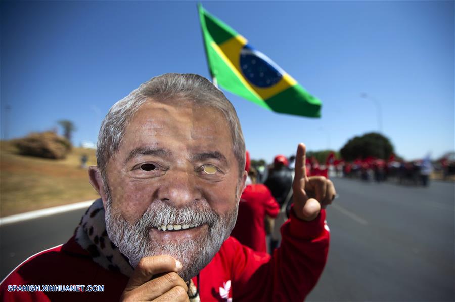 BRASILIA, agosto 14, 2018 (Xinhua) -- Una persona participa en una manifestación en apoyo al expresidente brasile?o, Luiz Inácio Lula da Silva, en Brasilia, Brasil, el 14 de agosto de 2018. Aproximadamente 5,000 manifestantes miembros del Movimiento de Trabajadores Rurales Sin Tierra (MST) llegaron el martes al centro de Brasilia en apoyo a Luiz Inácio Lula da Silva, cuya candidatura presidencial será registrada el miércoles en el Tribunal Superior Electoral (TSE). (Xinhua/Wilton Junior/ESTAD?O CONTEúDO/AGENCIA ESTADO)